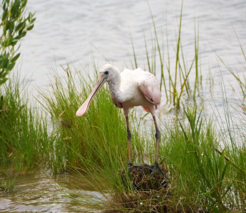He replied that it he had researched and that he believed it to be a roseated spoonbill, very rarely seen in our area. You have to wonder how that tiny head carries the weight of that huge bill.