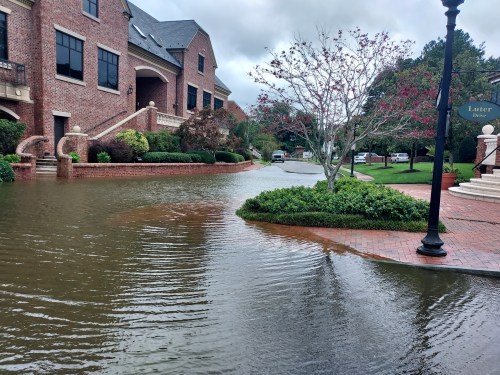 And finally, a video I took of us as we drove through flood waters in front of a local restaurant/marina/hotel.  We were in our SUV, and the waters had subsided. The street had been completely closed previously in the day. Motor Man says as long as he can see the lines in the center of the street, we’ll be okay.