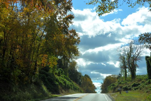 In the past, we’ve driven up on the Blue Ridge Parkway or Skyline Drive, but those steep drop-offs are a bit daunting to me, so I suggested to Motor Man that we drive along in the valley and look UP at the mountains.