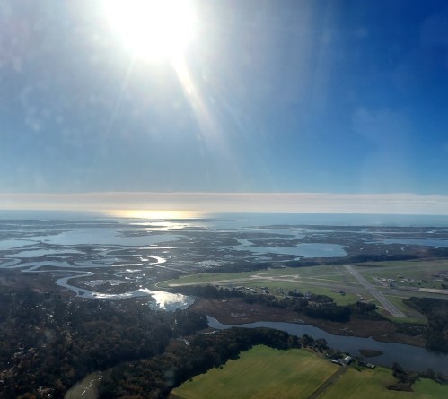 Saturday was the perfect day for a flight: mostly sunny, practically no winds and warm temps. We met our pilot, Sid, at the Accomack County Airport.