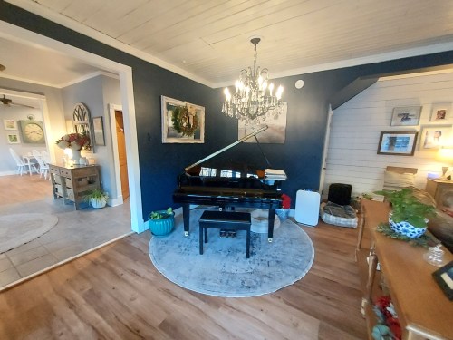 We were told that Savannah is an accomplished musician and singer, and we were hoping to be able to hear her, but time didn’t allow. This is another corner of the sitting room, the foyer and a glimpse at the dining area.