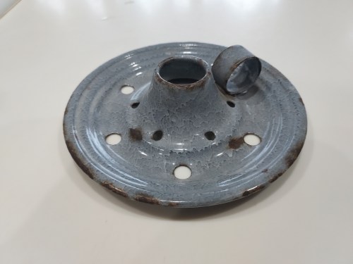 Perhaps this is a top, and the center hole fits over something? The little ‘thumb-ring’ is to make it easy to remove? The smaller holes could be for ventilation? (Lots of questions and ‘maybe’s in today’s post.)