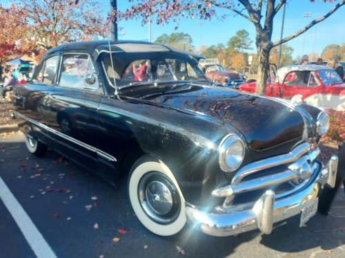 This is a 1949 Ford. And it is very similar (same year) to the car my mom owned during much of my growing up years.