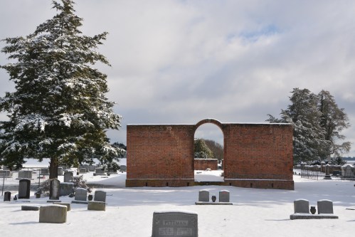 Also in Bacon’s Castle is the Old Brick Church cemetery, where the majority of my ancestors are buried. I don’t recall whether I’ve ever taken pictures of it in snow, but I’m sure that, in the past, there have been funerals held there during snowy weather.