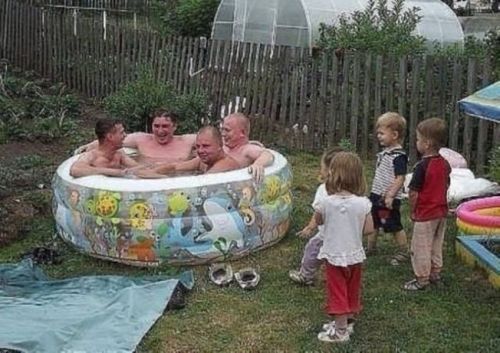 I guess we all have our moments when we don’t act our age (!) but obviously a full pool was irresistible for the guys in this photo……..it was probably halftime at the football game on TV they were watching and they decided to take a dip! Thanks for playing along with us on Thursdays – poetry is FUN……
