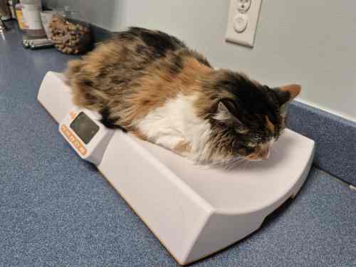 Once we were there, though, I was purrfectly behaved. When they took me from the carrier and placed me on the scales, I decided I’d just hang out there, and maybe everyone would just leave me alone.