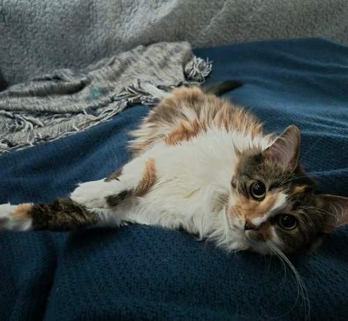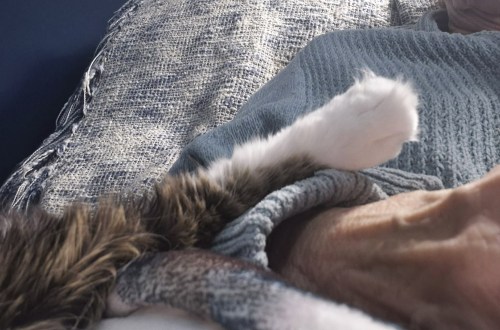 With nothing much to do, Motor Mommy spent most of the day in her recliner. And that meant I spent most of the day beside Motor Mommy in her chair. I love to stretch out my hind legs when I’m relaxed. And somehow my paw ended up on Motor Mommy’s hand. She thought it was really cute. I thought it was really comfy.