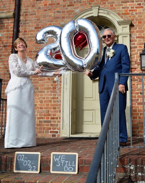 On our twentieth anniversary, our friends, Darcy and Ken, met us for lunch, then went with us ‘back to the scene of the crime’ for a fun photo session. Yay, my wedding dress still fit!