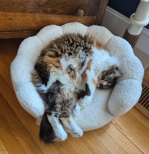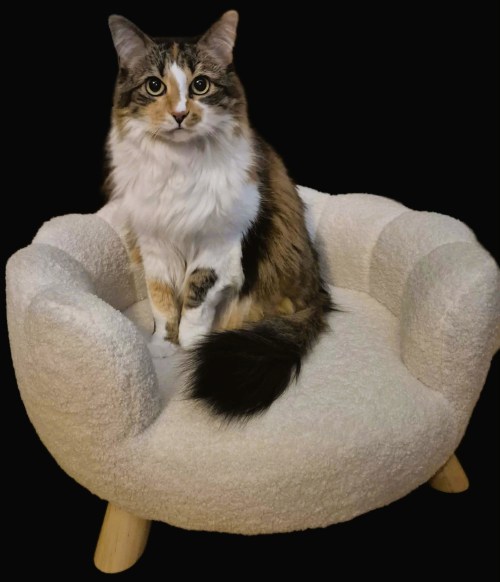 A couple of weeks ago, I overheard Motor Mommy telling Motor Man about a ‘kitty sofa’ she’d seen pictures of on Facebook.  And guess what? I think Cupid must have heard their conversation.  And he must have been channeling Santa Paws, because he brought me a Valentine’s gift!