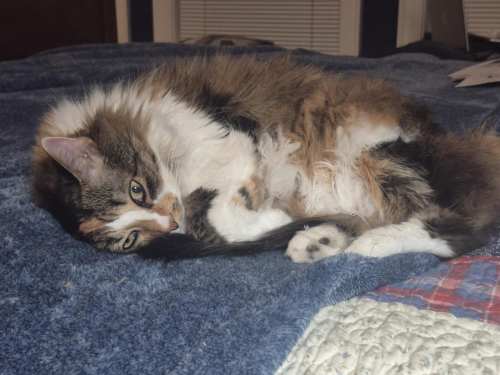 And, she just missed getting the part on video where I grabbed the tip of my tail for more bathing (please ignore background noise). And that’s my buddy, Motor Man, relaxing in his recliner.