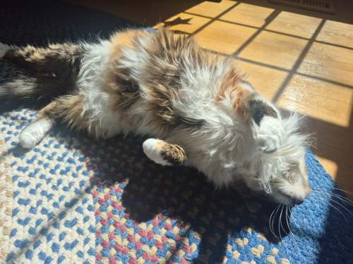 Ahhhh yes….the joy of sun puddles. Teddy is on the guest room bed enjoying a big sun puddle right now! I do believe this whole week will be bringing lots of opportunities for enjoying those puddles since rain is NOT on the agenda. Enjoy your week Coco – Teddy sends a hug.