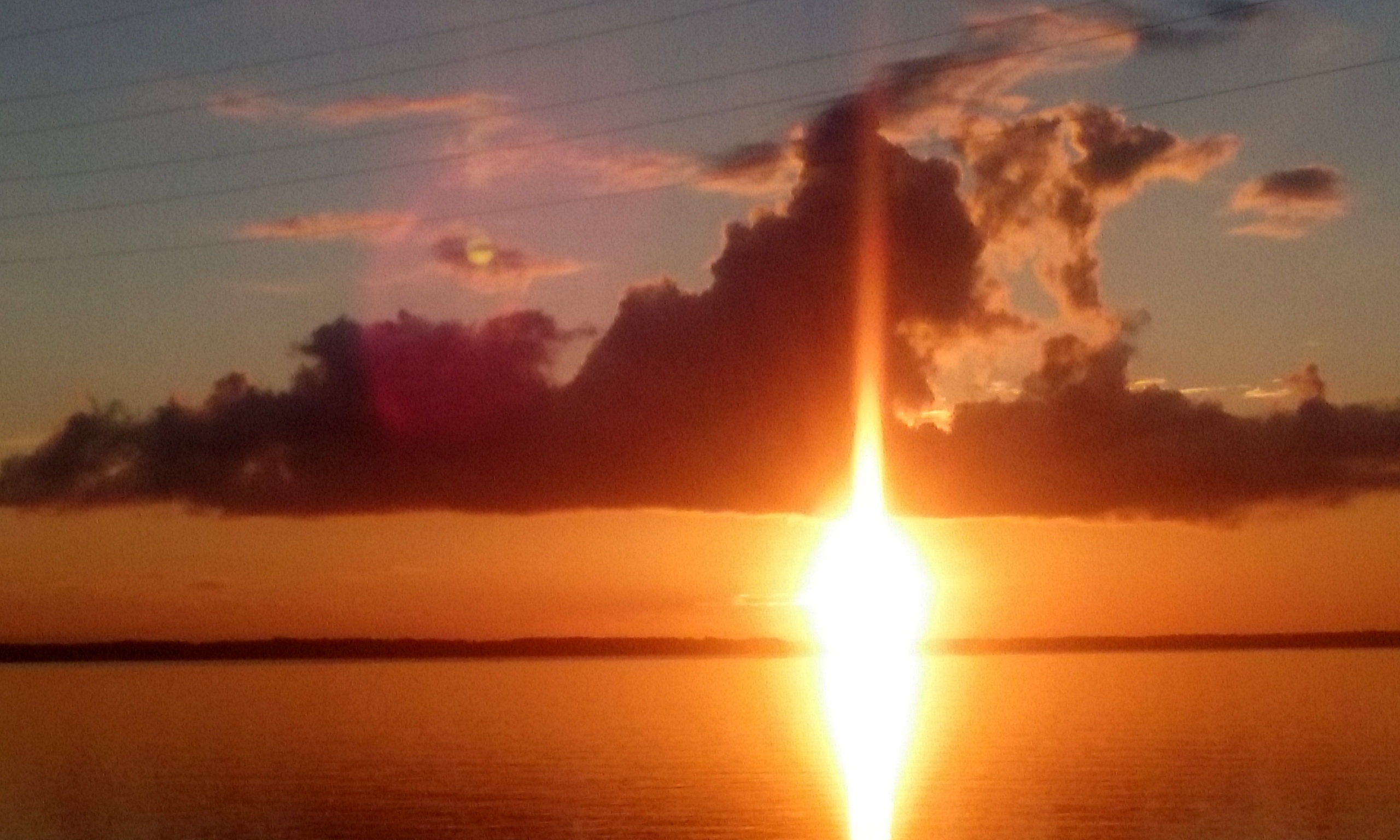 2.) Tuesday evening, Motor Man and I were coming home from dinner and errands in Newport News.  We were on the James River Bridge at sunset, and I had, uncharacteristically, left my camera at home. I attempted a picture with my cell phone. When I uploaded it to my computer, I was amazed at just how bright the sun is in this picture.