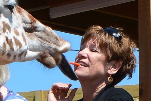 This may be my favorite picture from that trip. Later, for health reasons, the park was required to change the rules, so that you couldn’t let the giraffes take a carrot directly from your mouth. Although it appears to be in this picture, her tongue never touched my face.