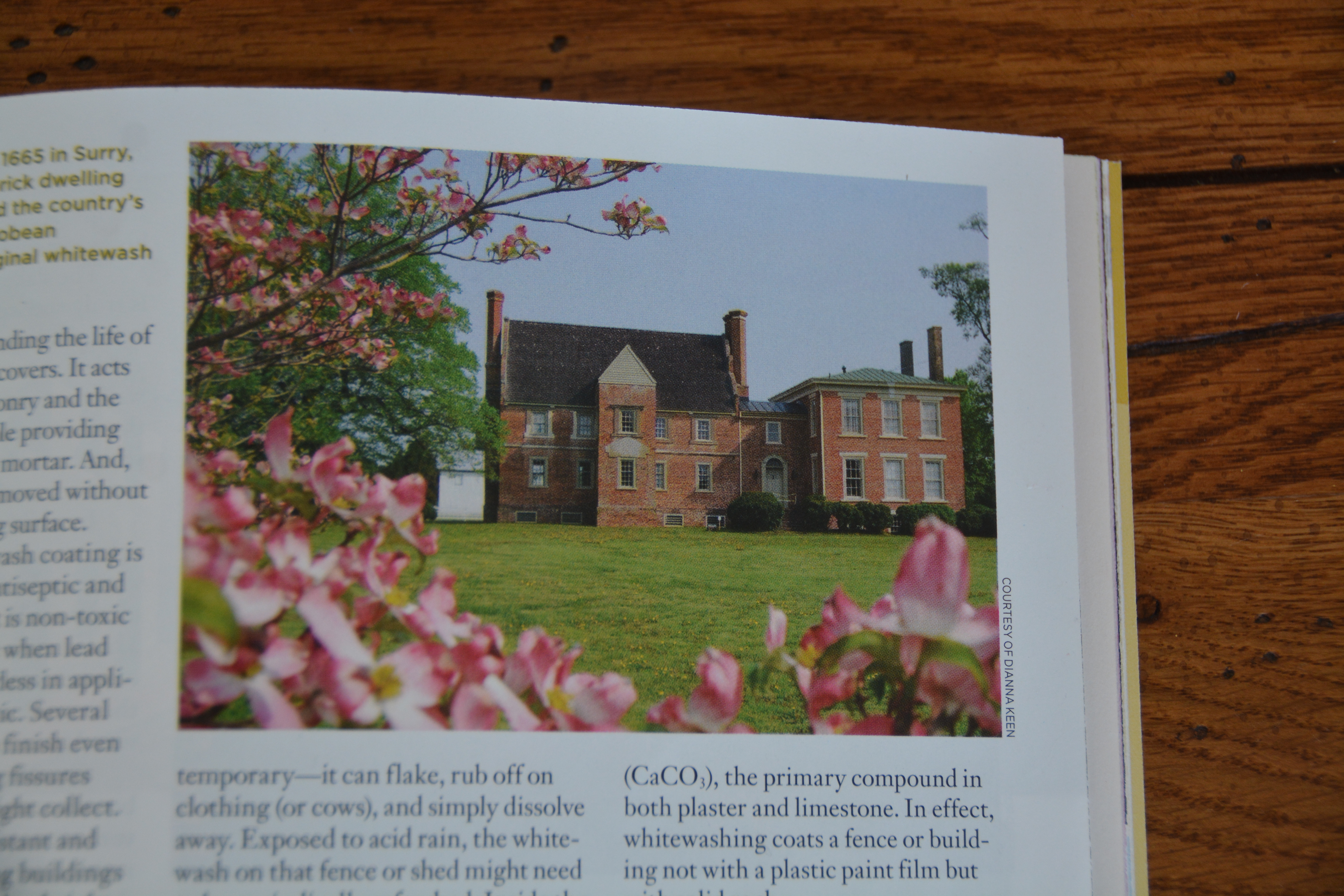 A couple of months ago, I received an email from Winn Rosch, a contributing editor for Early American Life magazine, asking permission to use one of my photos of Bacon’s Castle in an upcoming article about whitewash.