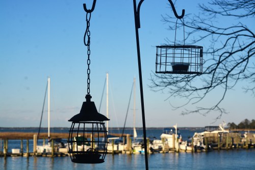 Yesterday, after spotting a couple of bluebirds (YES!) on the shepherd’s hook, I put the repurposed feeder to use and filled both feeders with meal worms.