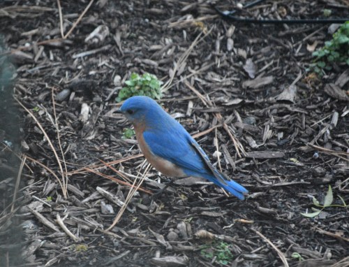 The bluebirds wouldn’t cooperate with me getting a picture of them at the feeder, but I did manage to get this of one on the ground. I just think that is the most amazing blue.