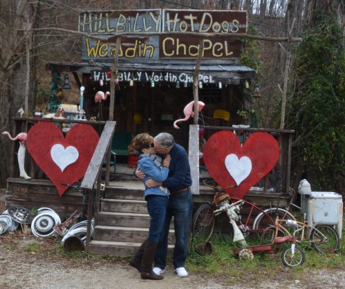 We shared a hot dog and a hamburger, both were really good.  Then we couldn’t resist a picture at the “kissin cuzins maryin booth”.