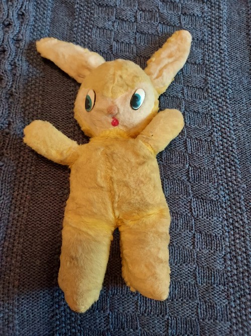Growing up, I don’t ever remember Mom coloring eggs, and I really don’t recall the “Easter Bunny” visiting. I do have a very old stuffed bunny that Mom says the Easter Bunny brought to me when I was very young.
