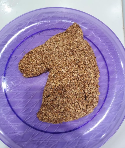 In addition to St. Patrick’s Day, we also celebrated Chevelle’s sixth birthday. I found a cake pan a few weeks ago at an antique shop and used that with a special recipe (oats and molasses) to make her birthday cake. And, of course, it had to be served on a purple (her color) plate.