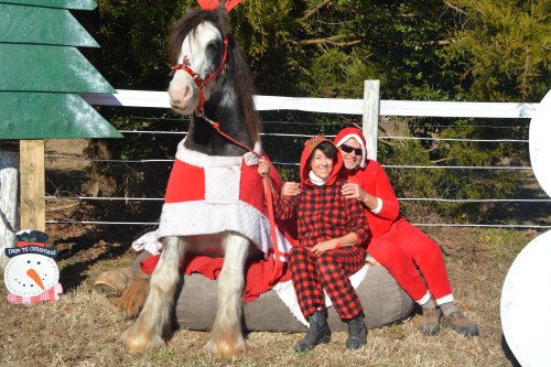 One of the fun parts of visiting Darcy is that we dress up for holidays and take pics with the horses. So today, to begin Christmas week, I thought I’d share some of our Christmas photos from the past five years.