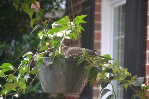 You may recall my posts last summer, relating how The Dove Family found affordable housing in one of my hanging geraniums.