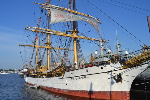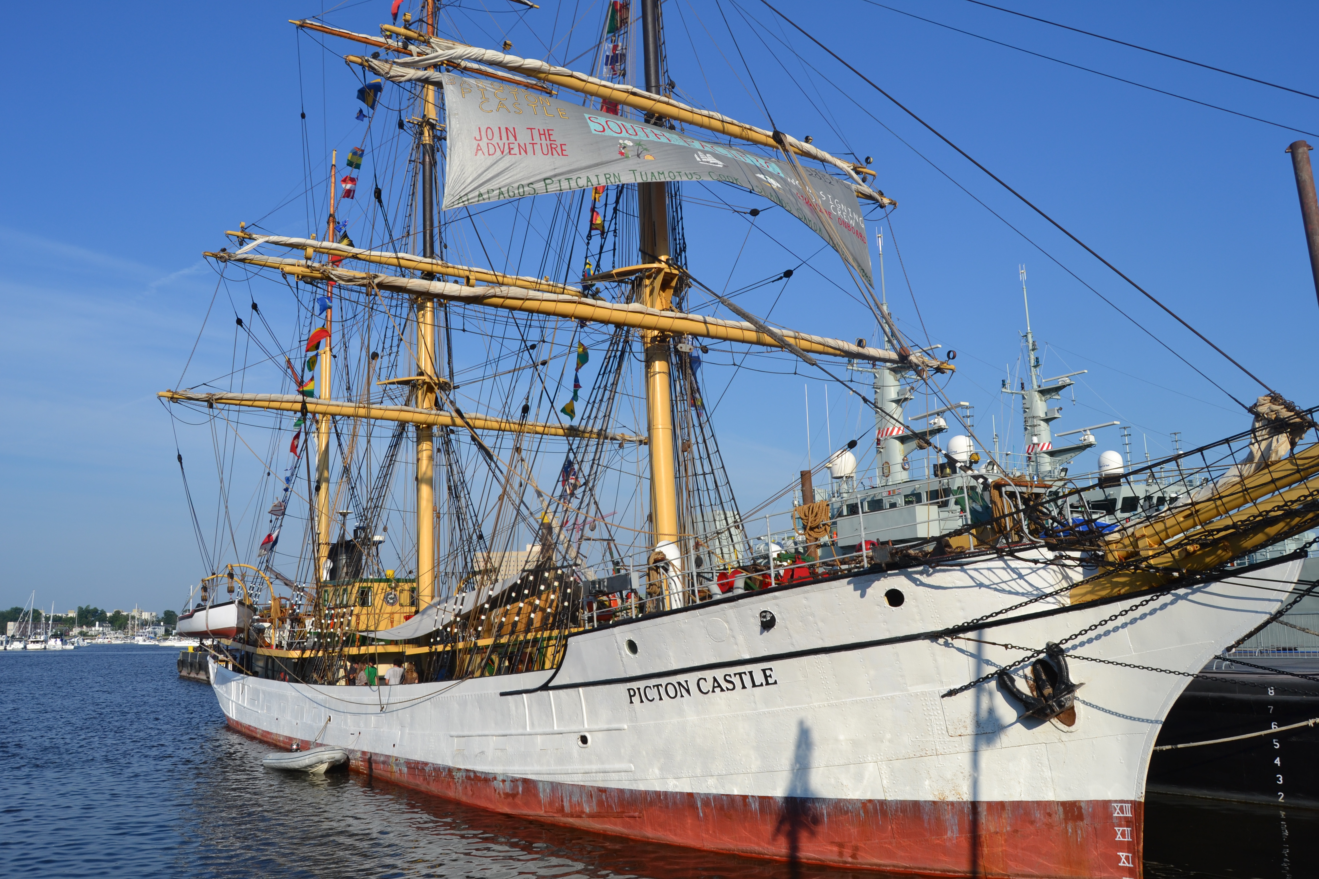 Tall ships, representing many countries, come together during Opsail. The event ends with the Parade of Sail in New York on July 4. This is the Picton Castle, whose home port is the Cook Islands.