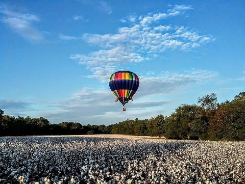 It was a beautiful morning for a flight, and it was fun to “chase” the balloon. Their flight took them over some of our county’s beautiful cotton fields, just waiting to be picked.