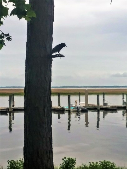 3.) It seems I now have a pet crow.  He sits on this almost-too-small perch and caws at me while I’m in the yard.