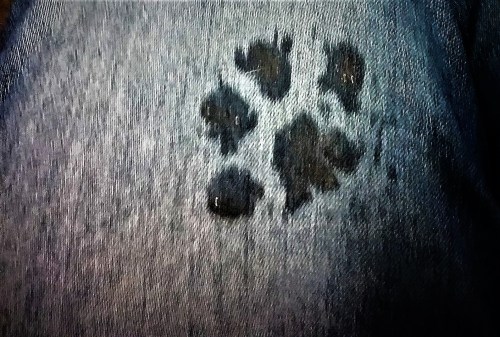 4.) I thought this was an interesting shot.  As you may recall reading here before, Gypsy loves playing in her water bowl.  I’m not sure the reason why. Earlier this week, she jumped up in my lap immediately after some water-play. You just gotta love the durability of denim.