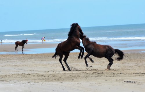 1.) Motor Man and I took a quick day trip to the Carova area of the Outer Banks earlier this week.  We actually lost count of how many horses we saw ON. THE. BEACH. The flies were bothersome, and when that happens, the horses head to the water’s edge for relief.  And because so many harems were in the same location, there was lots of action among the stallions.