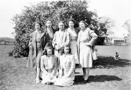 I have this old family photo of my grandmother and her six daughters. My mom is standing on the far left. In the background, on the far right of the photo, you can see the old barn with the bell tower.
