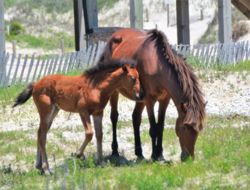 Yesterday, Motor Man and I took a day trip to our happy place: Carova, North Carolina.  It was a gorgeous day: sunny and in the low 70’s. We saw 26 horses, including, once again, baby Amelia.   You may recall my blog post from a couple of weeks ago, where I shared a video of her running laps around her mom.