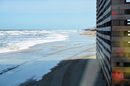 When we were leaving, the tide was a bit higher than we’re accustomed to seeing.  This cottage, “Laughing Gull”, is very close to the ocean, sometimes closer than others. Driving around it when we came by was a single lane, and traffic took turns.