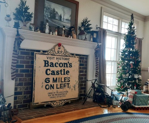 This is a former highway sign for historic Bacon’s Castle. Most of you know of my connections to this beautiful old home, but if you’re new to the blog, just click on the Bacons Castle category on the right to read previous posts. I remember exactly where this sign once was, just outside the town limits of nearby Surry.