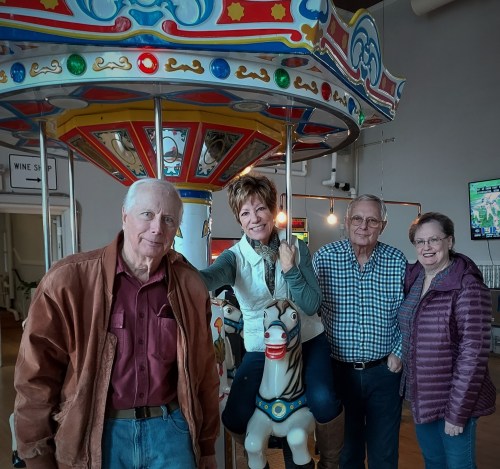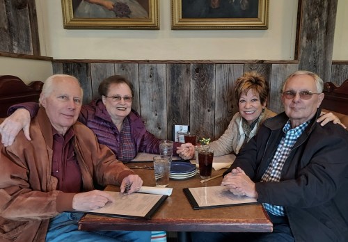 Our server, Robin, was the BEST. Pam’s neighbor outright said: “Get the cheeseburger”, so that’s what we all ordered. And our meals were all cooked just as we requested.  And Robin graciously agreed to take a picture of us.