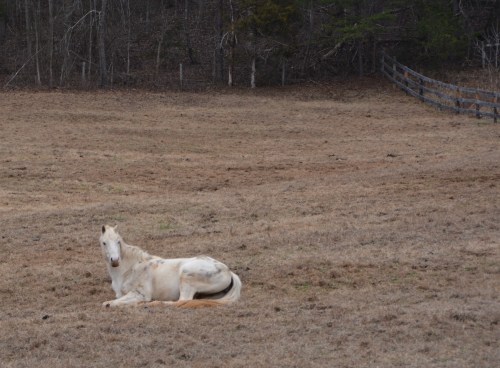 When we turned back around to continue home, the horse had stood up, but still seemed interested in US.