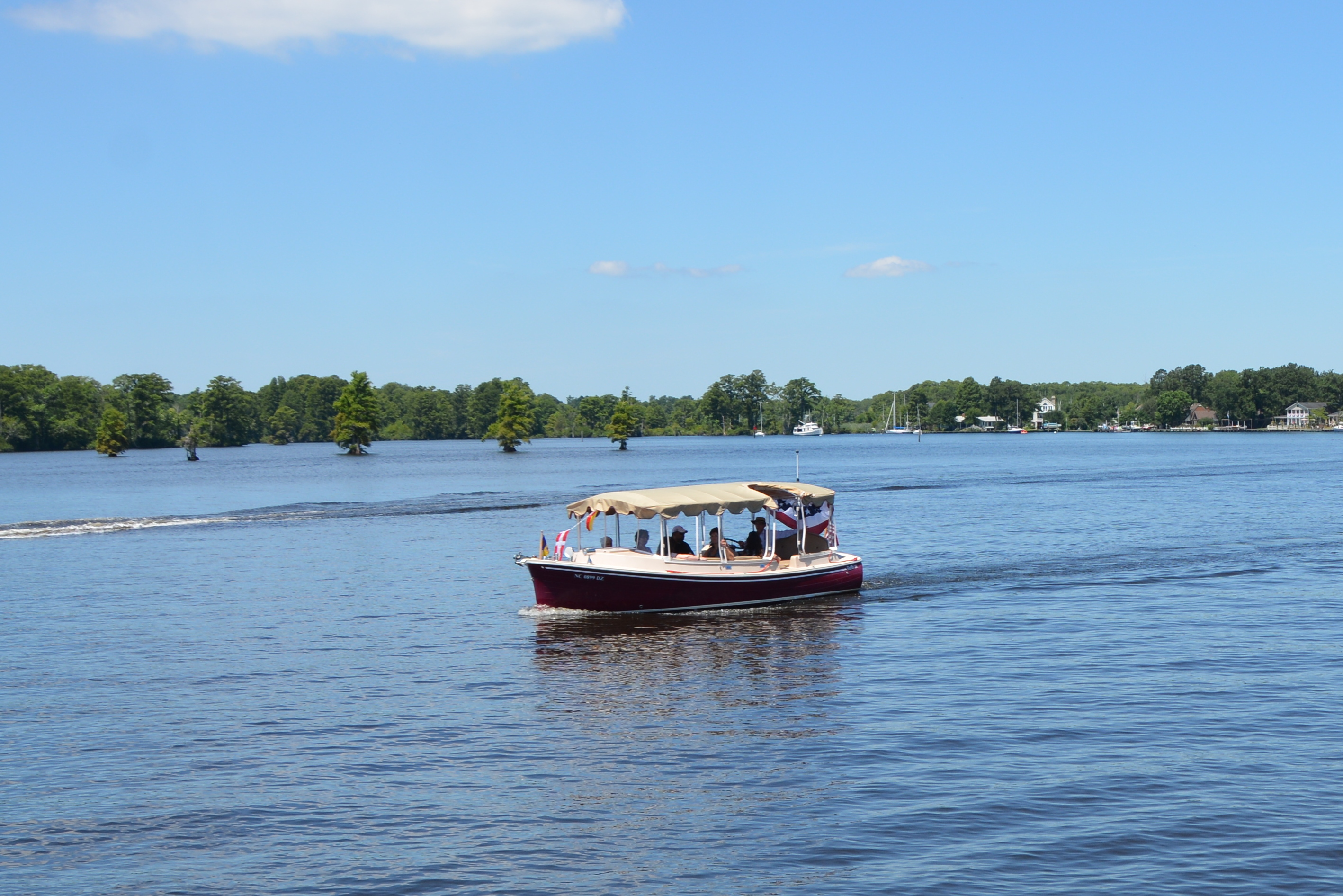 Our harbor cruise was aboard the Liber Tea, an electric (very quiet) boat which accomodates six passengers. The boat is named in honor of Edenton’s tea party movement in 1774, organized by 51 Edenton ladies.
