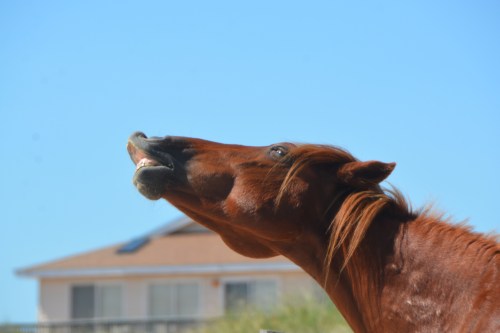 I’m not sure what was happening in this next picture, but I thought it was an interesting shot. (Once again, my photos are taken with a “zoom” lens, then cropped once they’re downloaded. I’m not nearly as close to the horses as it appears.)