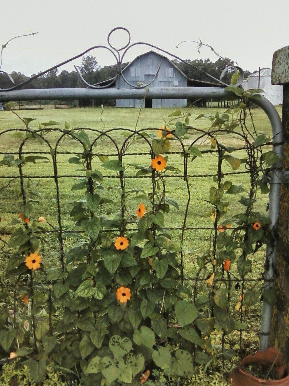 She planted it to grow on an old gate in her yard, and last week, she texted me with a picture and these words: “your gift on my gate”.