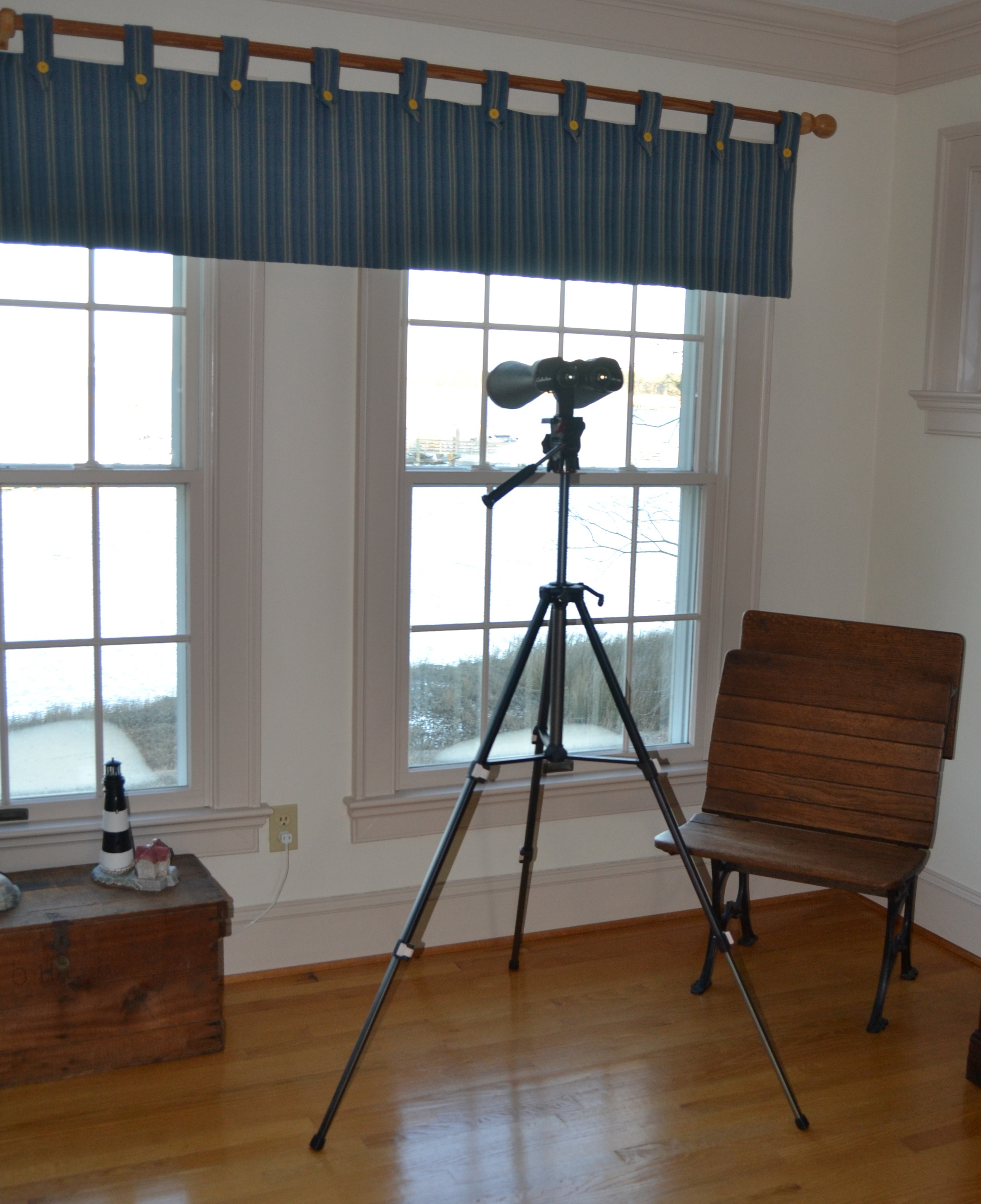 I knew that, even before we were married, Motor Man had a pair of binoculars off to the side in an upstairs sitting room. I’ve even used them once or twice to look out across the river. But since I knew nothing about tripods, I thought the “stand” they were mounted on was a stationary one.