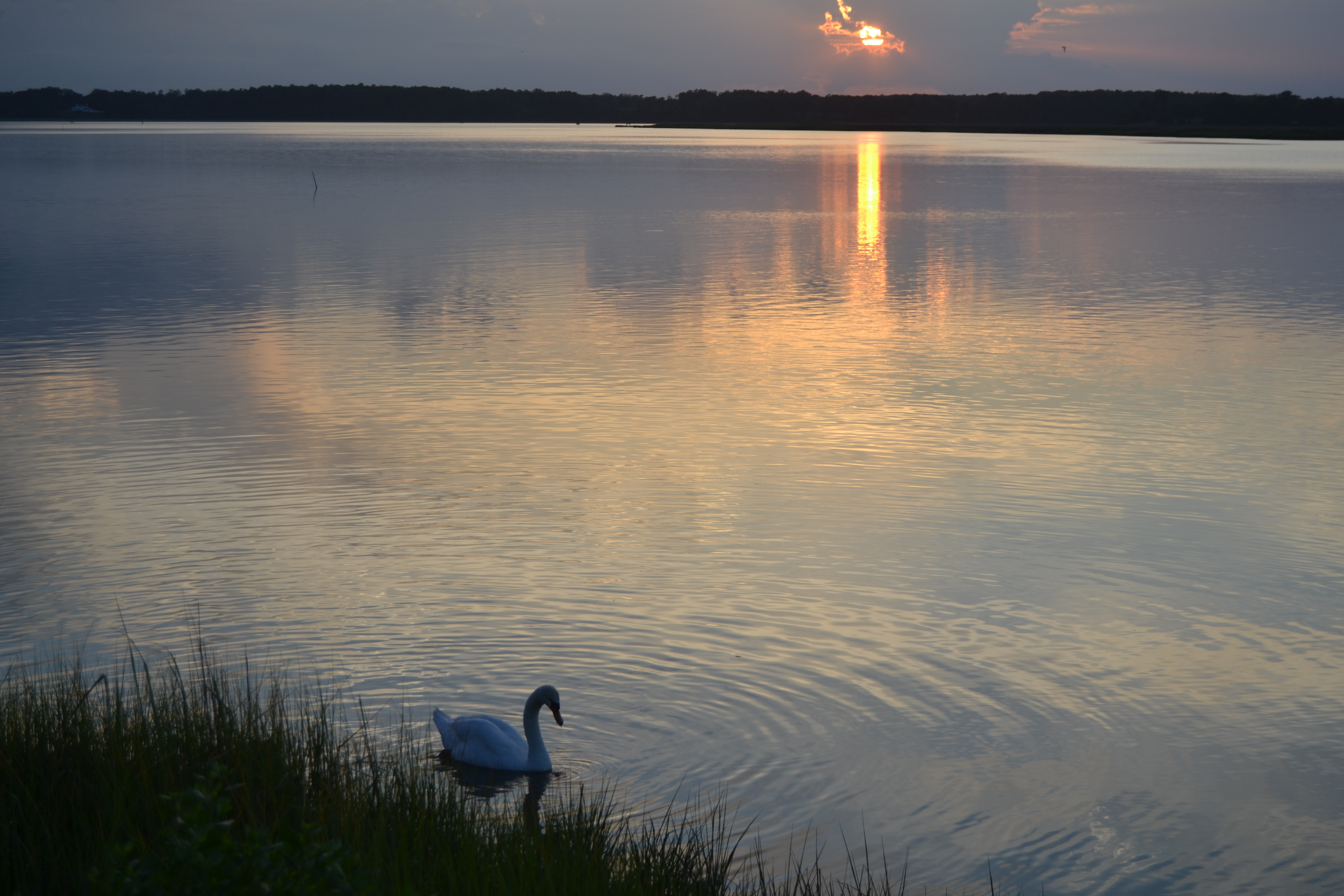 I love “our” little Bride Swan; even more beautiful with the sunset as a backdrop.