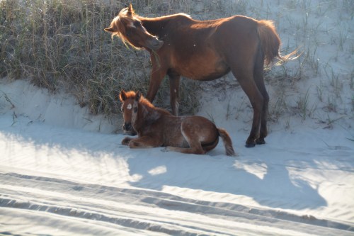 In my posts the past couple of weeks, I’ve mentioned that there are new foals at the beach at Carova. Unconfirmed reports are saying four or five little ones have already been born this season.