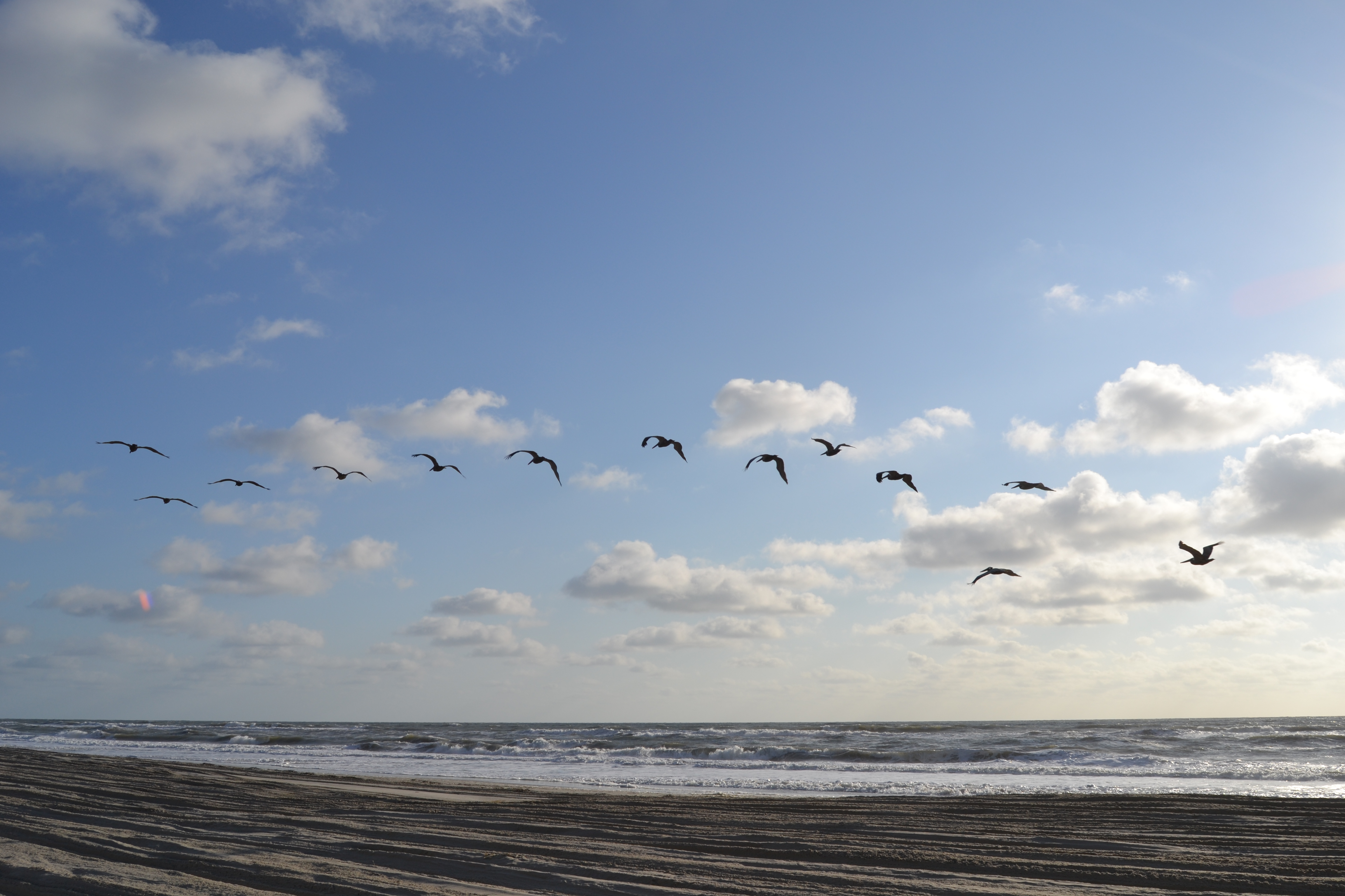 And although this wasn’t taken at the time of sunrise, I wanted to share this picture of pelicans in flight.